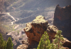 La otra peculiaridad de Gran Canaria es su especial configuración geomorfológica. Una inmensa caldera de hundimiento, la Caldera de Tejeda, domina el centro de la isla, y despliega a su vez una red de drenaje de aguas pluviales que recorren los barrancos y serpentean hasta llegar al mar.