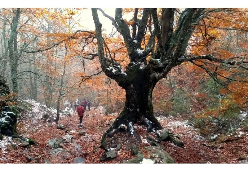 Junto al puerto de la Quesera se encuentra uno de los hayedos más meridionales de Europa, el de La Pedrosa, pequeña reliquia de tiempos más frescos y húmedos que aún pervive en la Sierra de Ayllón; combinaremos su visita con el recorrido por la línea de cumbres desde el alto del Parrejón hasta el pico Merino para conocer el sector más septentrional de esta sierra a caballo entre las provincias de Guadalajara y Segovia.
