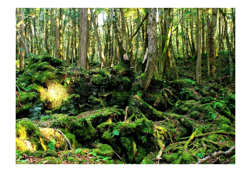 Ahokigara, el llamado Bosque de los Suicidas, es uno de los lugares más interesantes de las laderas del Fuji, y no solo por su aspecto más triste y oscuro. Este tupido bosque creció sobre la lava arrojada por el monte Fuj en la gran erupción del siglo IX. La densidad del bosque, donde apenas penetra el viento y el lecho de lava poroso que absorbe el sonido, provoca una gran sensación de aislamiento que se puede sentir al recorrer este territorio indómito.