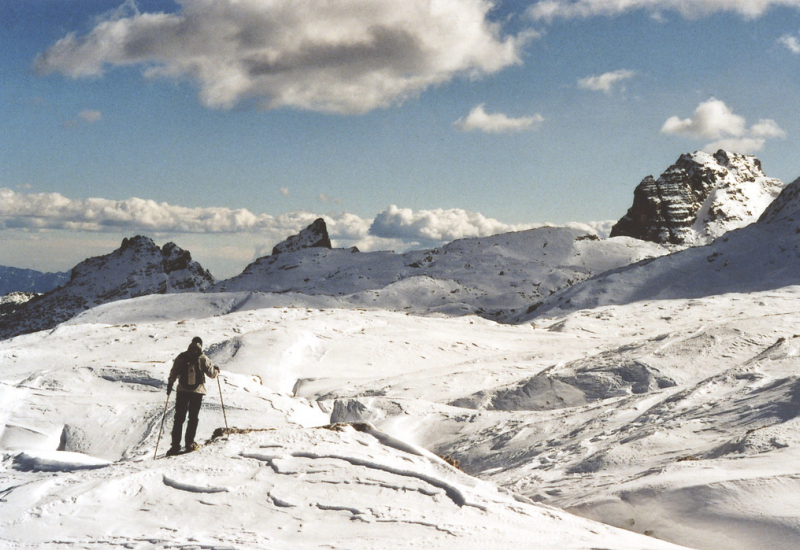 El grupo de Brenta, protagonista de este viaje, es el macizo dolomítico más occidental. Conoceremos una de las mayores zonas protegidas de los Alpes, caminando junto a lagos nevados de gran belleza como los que se suceden a los pies del macizo Adamello-Presanella, lagos de Nambino, Serodoli, Ritorto y Tovel, con sus cercanos y acogedores refugios a los que llegaremos caminando con nuestras raquetas por un paisaje nevado de inigualable esplendor, siendo sin lugar a dudas el punto fuerte del viaje, en el que también disfrutaremos de espectaculares cascadas como las de Vallesinella, y por supuesto podremos admirar las paredes verticales, agujas y crestas que dan personalidad a las Dolomitas y que toman al atardecer un color anaranjado único que las hace destacar aún más del resto de montañas alpinas que las rodean.