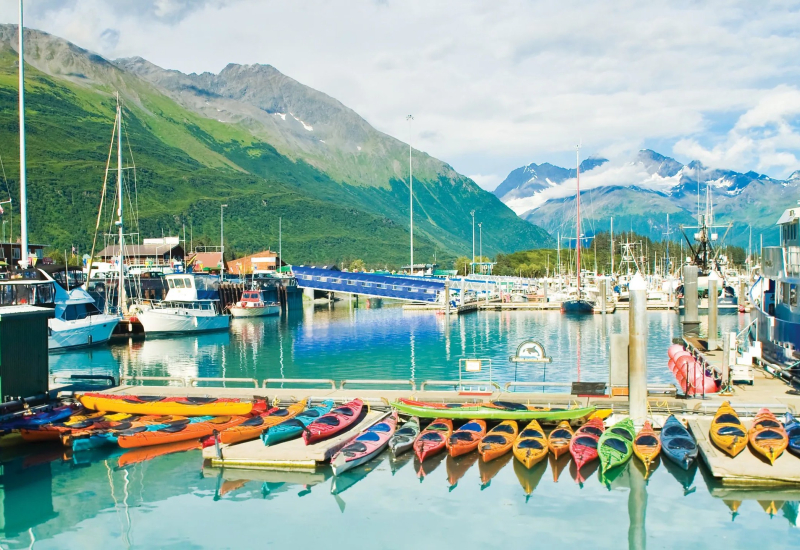 Sobre Seward se encuentra el Mount Marathon, que es una accesible cima con estupendas vistas sobre el fiordo de Seward, también llamado Resurrection Bay. Rodeada de montañas que descienden casi hasta el agua, sus aguas frías y protegidas permiten observar fauna marina como ballenas, orcas, nutrias y leones marinos durante gran parte del año. Además, es la puerta natural hacia los fiordos y glaciares del Parque Nacional de los Fiordos de Kenai, lo que convierte a Seward en un punto ideal para excursiones en barco, kayak y rutas de montaña que combinan mar, hielo y paisajes alpinos.