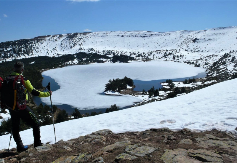 Viaje a Vinuesa (2 h 40 min). Antes de alojarnos caminaremos por la sierra de Neila, continuación de la sierra de Urbión, ascendiendo al Pico Campiña una inmejorable excursión para experimentar la montaña invernal. El espectacular rosario de lagunas de origen glaciar que se desgranan a los pies del pico Campiña – Negra, Cascada, Tejera, Haedillo, Larga, Pardilla, Patos y Brava – ofrece una gran variedad de ecosistemas vegetales y algunas especies en extinción como los tritones o el desmán pirenaico.