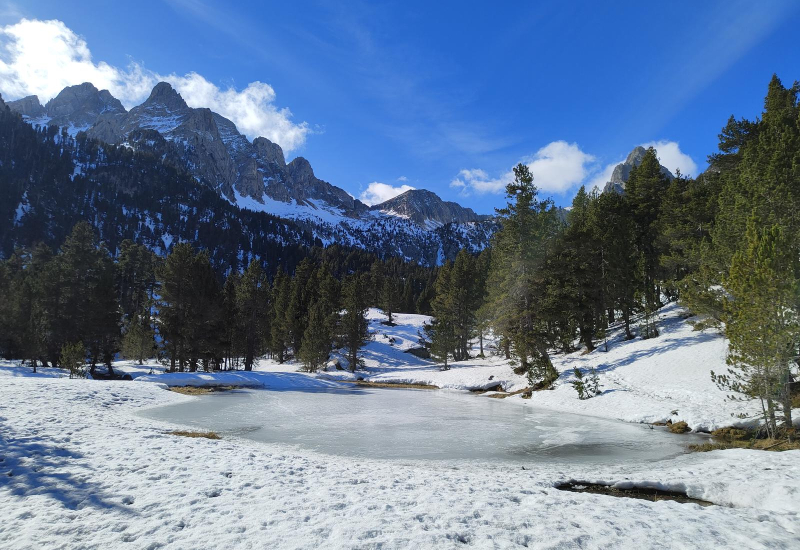 Empezamos nuestro viaje con uno de los imprescindibles itinerarios del Valle de Benasque que nos conducirá hasta los pies del Pico Aneto y su glaciar, pasando por alguno de los rincones más famosos del Pirineo, como el Forau de Aigualluts. Sin duda será la mejor forma de comenzar a caminar con raquetas por la amplitud del valle y el entorno que le rodea.
