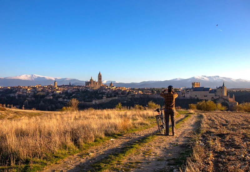 Hemos dividido esta ruta en dos cómodas jornadas, arrancando en las inmediaciones de Segovia y finalizando en Olmedo; en ellas se recorren primero los bosques de encina y roble melojo originales que luego darán paso a chopos y campos de cereal, creando un paisaje que recuerda a los Campos de Castilla. El pedaleo por esta plataforma del ferrocarril invita a conocer bosques de ribera, el encinar de Lobones, los pinares del río Eresma o la planicie de cereales tan característica de la zona; además, a lo largo del camino nos toparemos con varios miradores desde donde contemplar estampas únicas de las tierras pinariegas de Segovia y Valladolid, y nos desviaremos a la villa de Coca, presidida por su monumental castillo, y al Monasterio de Santa María la Real de Nieva, además de estar alojados en la población inmortalizada por Lope de Vega en su conocido drama "El caballero de Olmedo", donde podremos diasfrutar de su riqueza histórica y monumental paseando por su casco histórico.