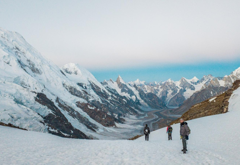 Esta jornada alcanzaremos la máxima altitud del trekking (siempre que las condiciones lo permitan). Daremos el salto a la vertiente de Hushe, donde bajaremos el valle de Hushe y su glaciar, de unos 20 kilómetros de largo, con el Laila Peak, esta aguja característica de adorna el valle.
