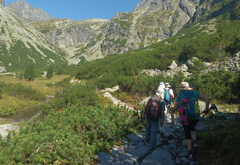 A lo largo del camino, se pueden disfrutar vistas espectaculares de los picos afilados y los valles glaciales que caracterizan esta parte de los Altos Tatras, mientras los bosques de abetos y los pastizales de altura acompañan durante la etapa.