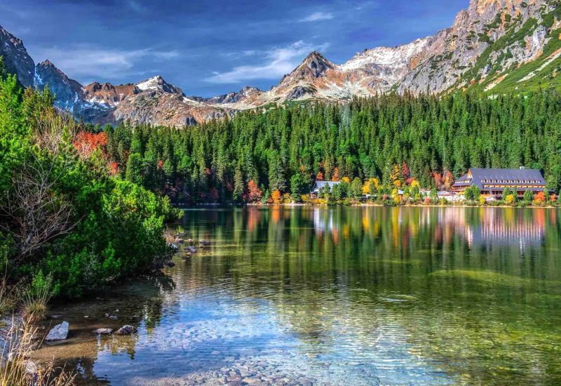 La etapa finaliza en el refugio Hotel Popradské Pleso, situado junto al lago glaciar Popradské pleso, ofreciendo un remanso de tranquilidad y un paisaje emblemático de los Tatras.
