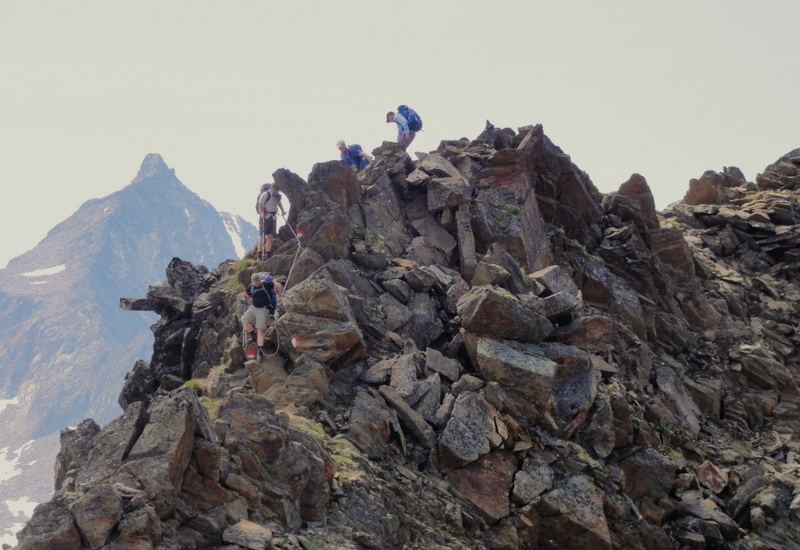 Opción alpina: una interesante variante de esta etapa consiste en recorrer la cresta del pico Grosse Trogler, situado a la derecha del collado Peijoch.