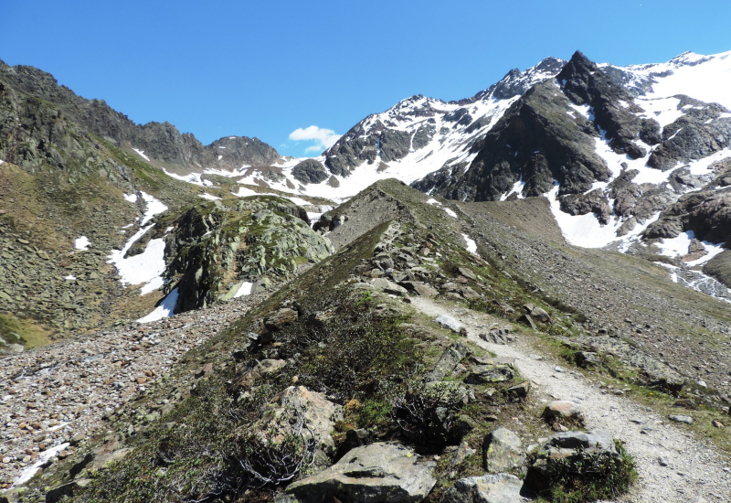 Trekking Nürnberger Hütte (2.297 m) – Sulzenauhütte (2.1912 m) - Dresdner Hütte (2.308 m) 9,5 km 910 m 900 m