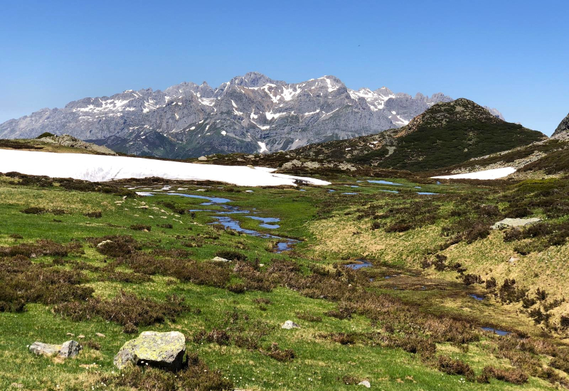 Hoy vamos a ascender a uno de los picos más representativas del valle de Sajambre. Partiendo del puerto de Panderrueda, remontaremos hasta el collado de la Vieja. Desde aquí ascenderemos a través de veredas por la Cerra de Cuénabres, un estrecho cordal que nos conduce hasta el collado de Sotres, donde abandonamos el cordal y alcanzamos la hoya de Freñana, lugar donde nace el río Cares, para ascender de nuevo y coronar el pico Gildar, magnífico mirador sobre el parque nacional. El descenso hasta el puerto de Panderrueda lo realizaremos caminando junto al arroyo del Cares.