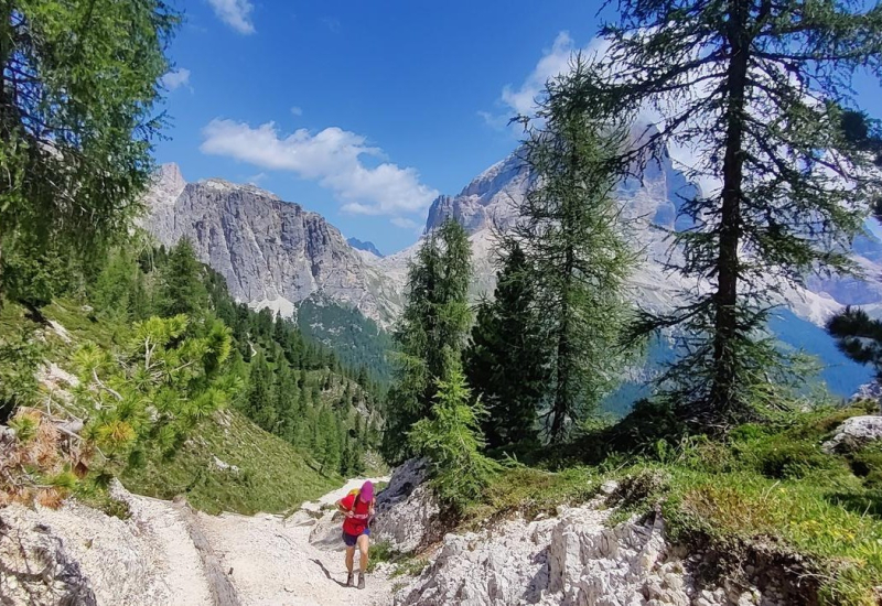 El objetivo de la jornada será alcanzar un balcón natural que nos permitirá observar la cara norte de la Marmolada y al lado opuesto, la inexpugnable fortaleza natural del Grupo Sella