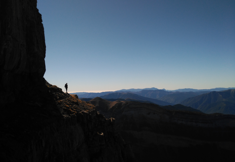 La etapa reina de este minitrekking es una sucesión de paisajes sobrecojedores, caminando por estas pequeñas superficies horizontales que los caprichos de la erosión han dejado en este entorno de verticalidad absoluta.