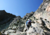 El itinerario clásico presenta tres chimeneas de II y III grado que en ascenso no deparan grandes dificultades pero que en descenso, si no se tiene la soltura y experiencia suficiente, pueden requerir rapelar o ser descendidos por el guía. Será necesario por tanto llevar arnés, casco, mosquetón de seguridad y una cinta plana cosida (1 metro aproximadamente). Adicionalmente, los que tengan experiencia en rapelar, deberán llevar un descensor y prusik de seguridad. Las personas sin experiencia en la técnica de rápel serán descendidas por el guía.