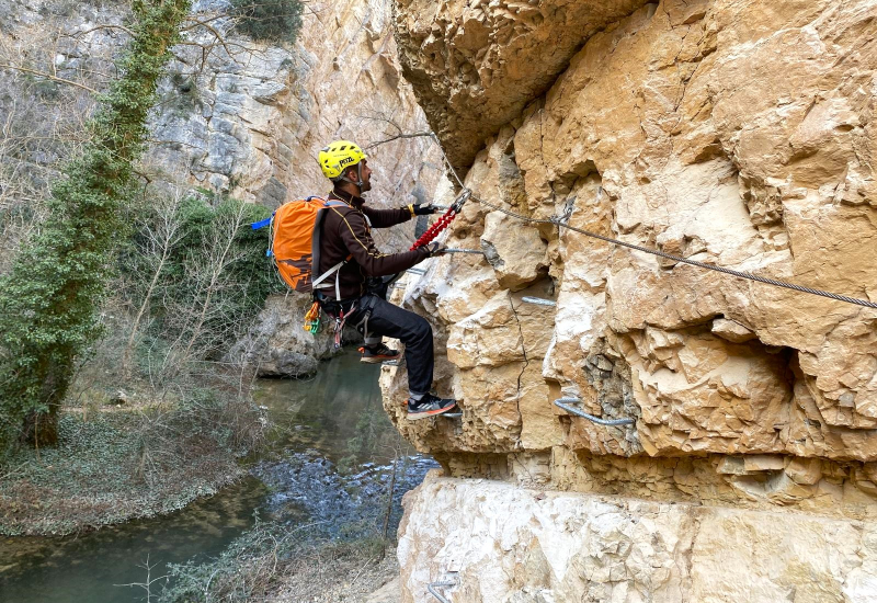 Adentrarse entre las angostas paredes labradas por el río Guadalaviar siguiendo dos sencillas ferratas es seguramente una de las mejores formas de iniciarse en este mundo, por la belleza de los rincones que vamos a descubrir, sin pasos difíciles y sin demasiada sensación de vacío.