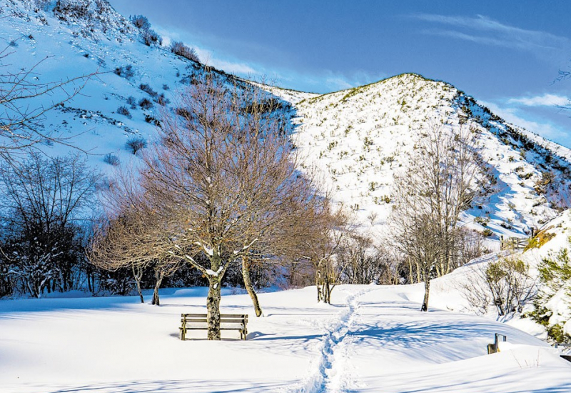 Viaje hasta la población leonesa de Puebla de Lillo (400 km) donde realizaremos una excursión con raquetas  para conocer uno de los mejores bosques de las Montañas de San Isidro, los hayedos de Lillo y bosques de la Cervatina.