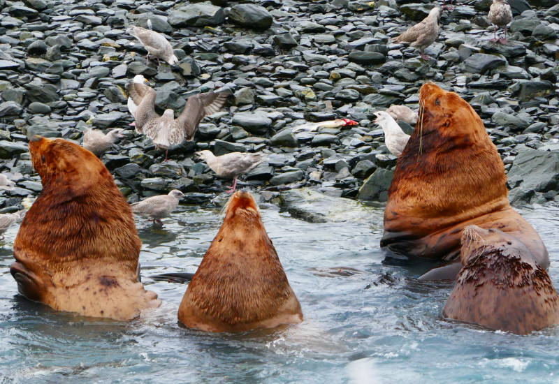 Durante la travesía marítima disfrutaremos no solo del paisaje mezcla de mar, montaña y glaciares sino también de la fauna con ejemplares de leones marinos, focas y ballenas.