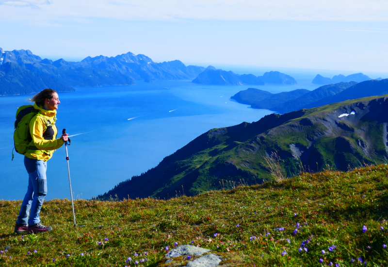 La punta Race Point (921 m) del Mount Marathon es famosa por acoger una de las carreras de montaña más duras y legendarias del mundo: la Mount Marathon Race del 4 de julio. La carrera tiene unos 3,1 km, pero con un desnivel brutal de más de 900 m en solo 0,9 millas. Todo comenzó como una apuesta informal entre dos colonos, desafiándose a subir y bajar la montaña en menos de una hora. Nosotros subiremos y bajaremos por un camino apto para caminar, pero podremos observar los pedregales y empinadas canales por los que los corredores son capaces de bajar.