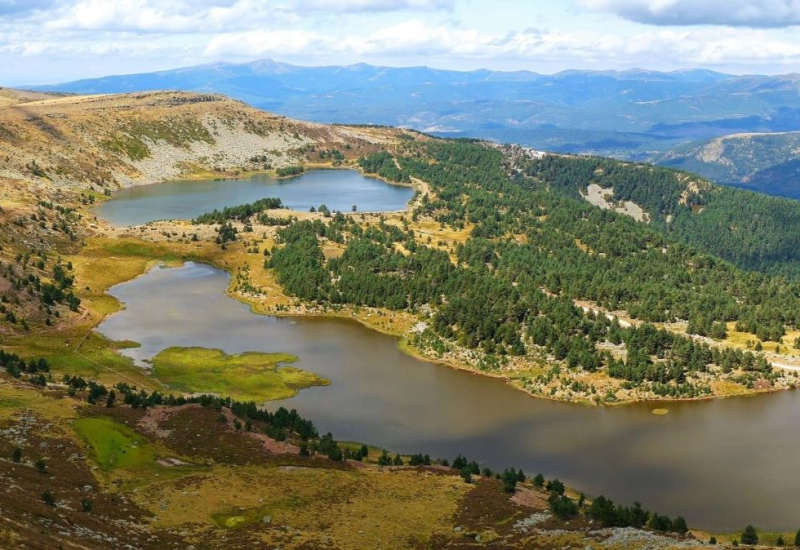 Viaje a Vinuesa (2 h 40 min). Antes de alojarnos caminaremos por la sierra de Neila, continuación de la sierra de Urbión, ascendiendo al Pico Campiña una inmejorable excursión para experimentar la montaña invernal. El espectacular rosario de lagunas de origen glaciar que se desgranan a los pies del pico Campiña – Negra, Cascada, Tejera, Haedillo, Larga, Pardilla, Patos y Brava – ofrece una gran variedad de ecosistemas vegetales y algunas especies en extinción como los tritones o el desmán pirenaico.