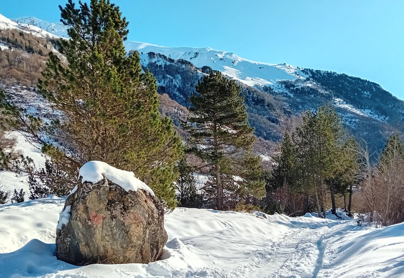 Empezamos nuestro viaje con uno de los imprescindibles itinerarios del Valle de Benasque que nos conducirá hasta los pies del Pico Aneto y su glaciar, pasando por alguno de los rincones más famosos del Pirineo, como el Forau de Aigualluts. Sin duda será la mejor forma de comenzar a caminar con raquetas por la amplitud del valle y el entorno que le rodea.