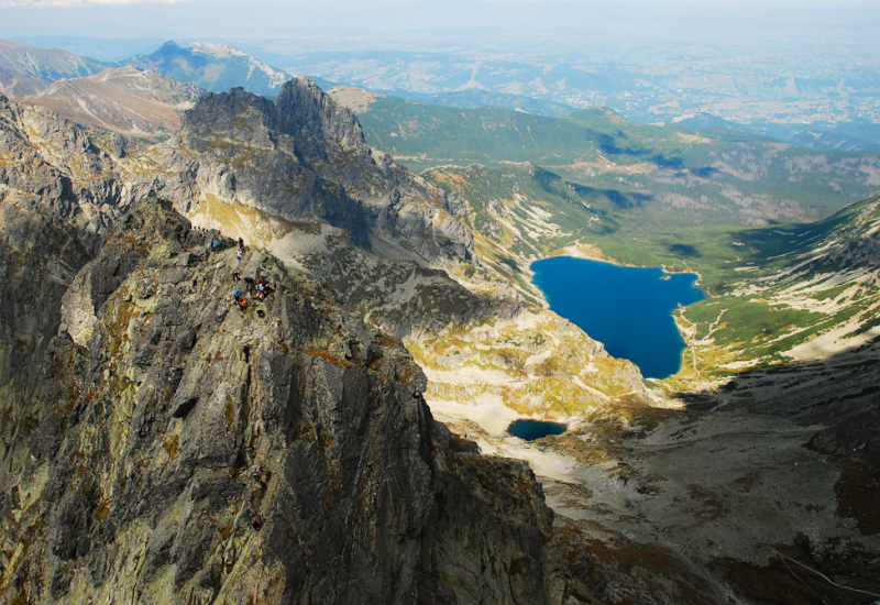 El extenso sistema montañoso de los Cárpatos es un arco que desde Ucrania extiende su brazo inferior hacia Rumania y el superior hacia Eslovaquia y Polonia, haciendo frontera entre ambos y tomando aquí el nombre de Montañas Tatras. Son jóvenes y afilados relieves de granito con altitudes máximas de 2.500 m, salpicados de lagos glaciares y abrigados con densos bosques de abetos en los que todavía habitan osos y linces, lo que da una idea del grado de conservación de la naturaleza dentro del PN de los Altos Tatras, el más antiguo del país, y al que dedicaremos más atención, no en vano fue declarado Reserva Natural de la Biosfera.