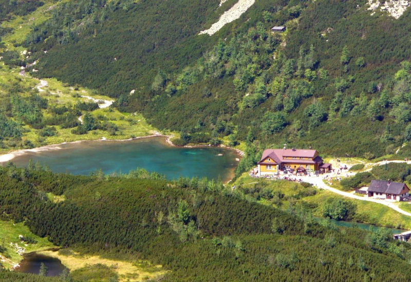 La etapa finaliza en el refugio Piecstawów (Staw Polski) (1.670 m), situado junto al lago Staw Polski, en un enclave protegido y emblemático de la vertiente sur de los Tatras.