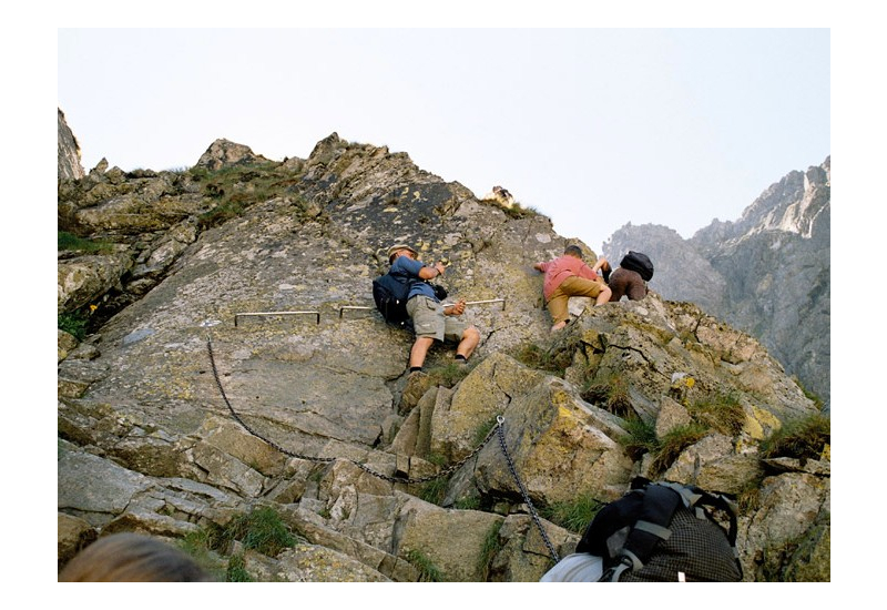 El paso de Zawrat (2.159 m) es el punto álgido de la ruta, un lugar estrecho y vertiginoso donde se siente la verdadera magnitud de la alta montaña. Hacia un lado, el valle de los Cinco Lagos, hacia el otro, el abismo hacia el valle de Gąsienicowa