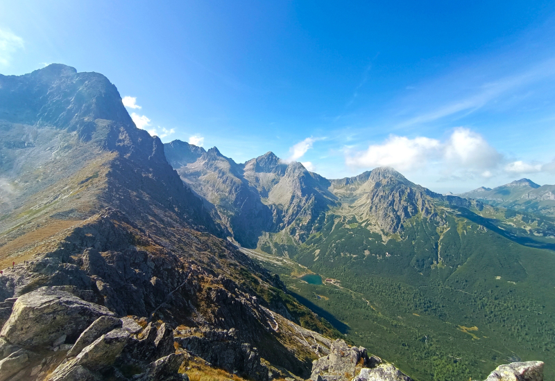 A lo largo del camino, se pueden disfrutar vistas espectaculares de los picos afilados y los valles glaciales que caracterizan esta parte de los Altos Tatras, mientras los bosques de abetos y los pastizales de altura acompañan durante la etapa.