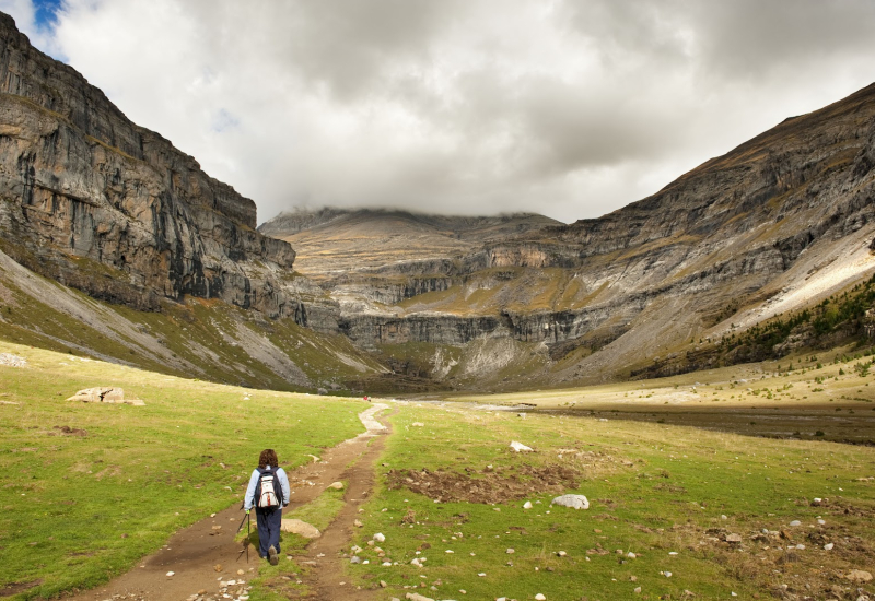 El mayor macizo calcáreo de Europa Occidental fue sometido durante el cuaternario a una profunda erosión glaciar que moldeó su peculiar morfología: farallones verticales y fajas horizontales se alternan en laderas que salvan centenares de metros de altitud entre las planas cimas y el fondo de los valles; un paisaje del que el vecino valle de Ordesa es el mejor y mayor exponente. Descendiendo desde la base del propio Monte Perdido, Ordesa forma un profundo cañón que gira casi 180 grados para unirse con el de Bujaruelo. Este paisaje se caracteriza por grandes contrastes, y es donde el agua de lluvia y deshielo se filtra por grietas y sumideros, los verdes valles se cubren por bosques y prados, donde el agua forma cascadas y atraviesa cañones y barrancos. No puede faltar en este viaje una incursión a este Parque Nacional, realizando una de las rutas imprescindibles de este grandioso escenario montañoso.