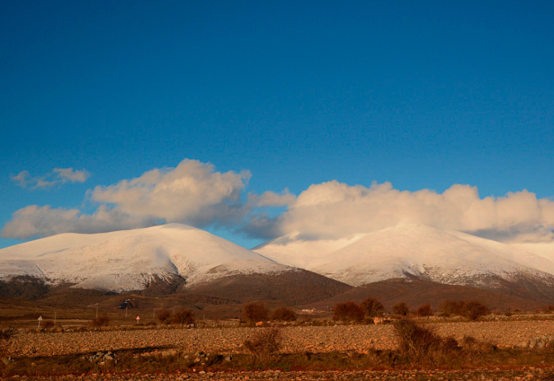 Situado a medio camino entre las provincias de Soria y Zaragoza, el Monte del Moncayo con sus 2.314 metros de altura es la cima la más emblemática del Sistema Ibérico. Su figura aparece solitaria entre las estepas aragonesas, los campos de la meseta castellana y las tierras del sur de Navarra, donde se encuentra el otro objetivo de este viaje, las Bardenas Reales y su surrealista paisaje sub-desértico.