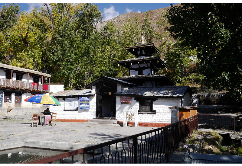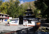 Muktinath es uno de los centros de peregrinación más antiguos y sagrados de Nepal, tanto para la religión hindú como para la tibetana. El templo es muy modesto, pero el entorno no puede ser más sobrecogedor, bajo las grandes cimas de los Annapurnas, de donde proceden los 108 manantiales con los que cuenta. Por si fuera poco, a lo lejos, la grandiosa cima del Dhaulagiri domina sobre el río Gandaki, de donde partimos hace dos días.